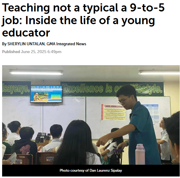 Dan Laurenz Sipalay teaches science at Caloocan City Science High School. He is just two years into the job, but already feels the full weight of a system that breaks down faster than it builds. He arrives at school before 7 a.m. and leaves long after dismissal. He teaches. He checks papers. He runs school programs. He coaches student journalists. He cleans his classroom. He does the work of three people, every day, with one salary and zero complaints. He doesn’t just teach science. He holds the system together with his bare hands.