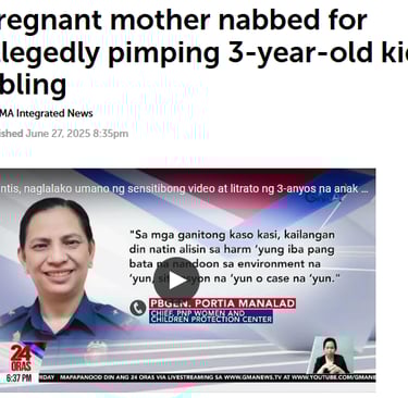 She was pregnant. And she was pimping her three-year-old online. Alongside her 14-year-old. Nude photos. Videos. Sold for as little as P2,000 to foreigners who paid well. This happened in Mabalacat, Pampanga. She was their mother. Her own parents stepped back and said, “Let the authorities handle it.” The police are still searching for more victims.