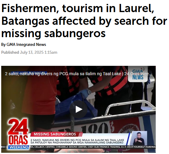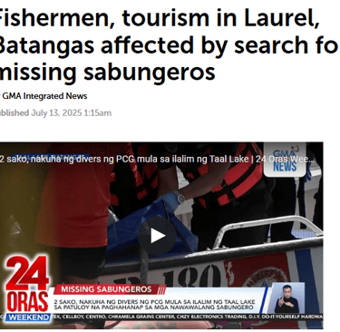 Laurel, Batangas was once a quiet town that lived off the lake. Fishermen cast their nets at dawn, knowing the market in Manila would take all they caught. Tourists came to breathe the air and see the water. But one dark story changed everything. The search for the missing sabungeros turned Taal Lake into a graveyard. Boats that once carried fish now carried divers looking for bodies. Visitors stopped coming. Orders for fish dropped. What used to be a life-giving lake now carries fear.