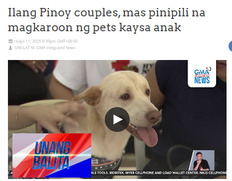 More Filipino couples are quietly rewriting what family means. Instead of hearing a baby’s cry in the morning, they hear the soft bark of a dog or the purr of a cat. They say they are not ready for children yet. They want to travel, build careers, and secure their finances first. Some even say they might never have kids. Pets are easier. They give love without the same weight of responsibility. But behind this choice is a story of fear, uncertainty, and a future many couples are unsure they can afford.