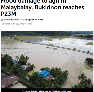 When the floods hit Malaybalay City, over 729 hectares of rice and corn fields were left submerged. More than a thousand families in Basakan District were displaced. Four homes were damaged. Crops were lost. Farmers left with nothing. The Rapid Damage Assessment and Needs Analysis team estimates the initial damage at P23 million. The numbers are still climbing. And the rains are not done yet.