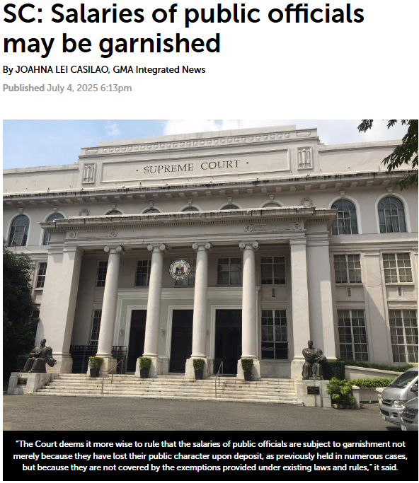 A city councilor once thought his government salary would shield him from debt collectors. He lost a case that did not even find him criminally guilty, only financially liable. He argued his salary was protected because it came from public funds. But the Supreme Court disagreed. Now his monthly pay can be legally garnished until his debt is paid in full.